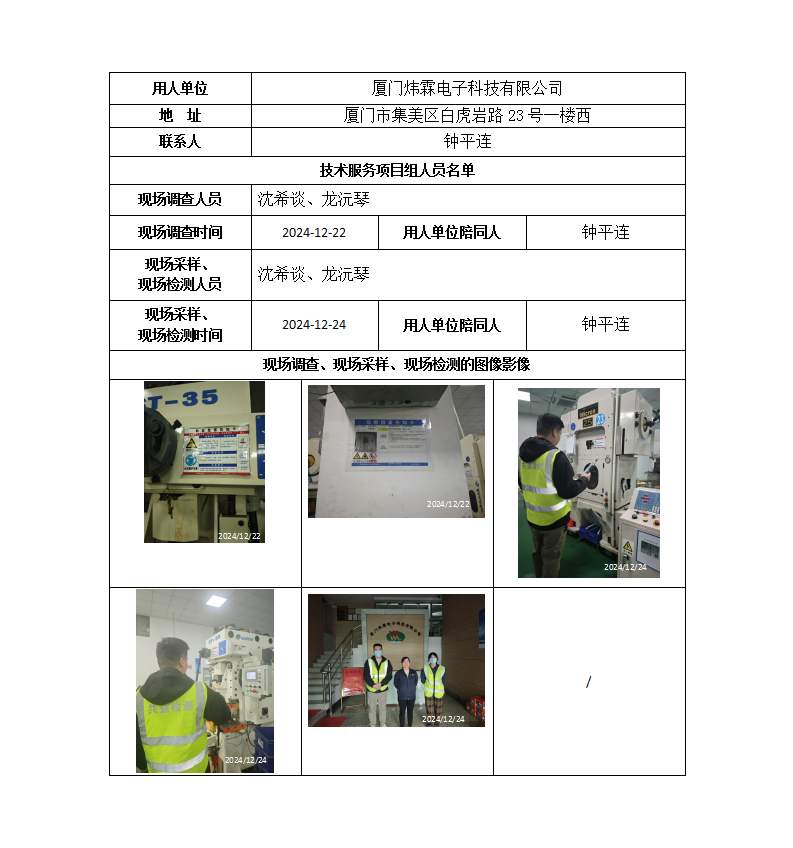廈門煒霖電子科技有限公司-2024年工作場(chǎng)所職業(yè)病危害因素檢測(cè)