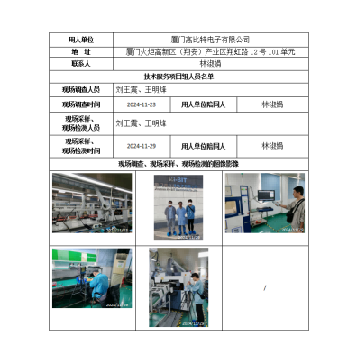 廈門高比特電子有限公司-2024年工作場(chǎng)所職業(yè)病危害因素檢測(cè)