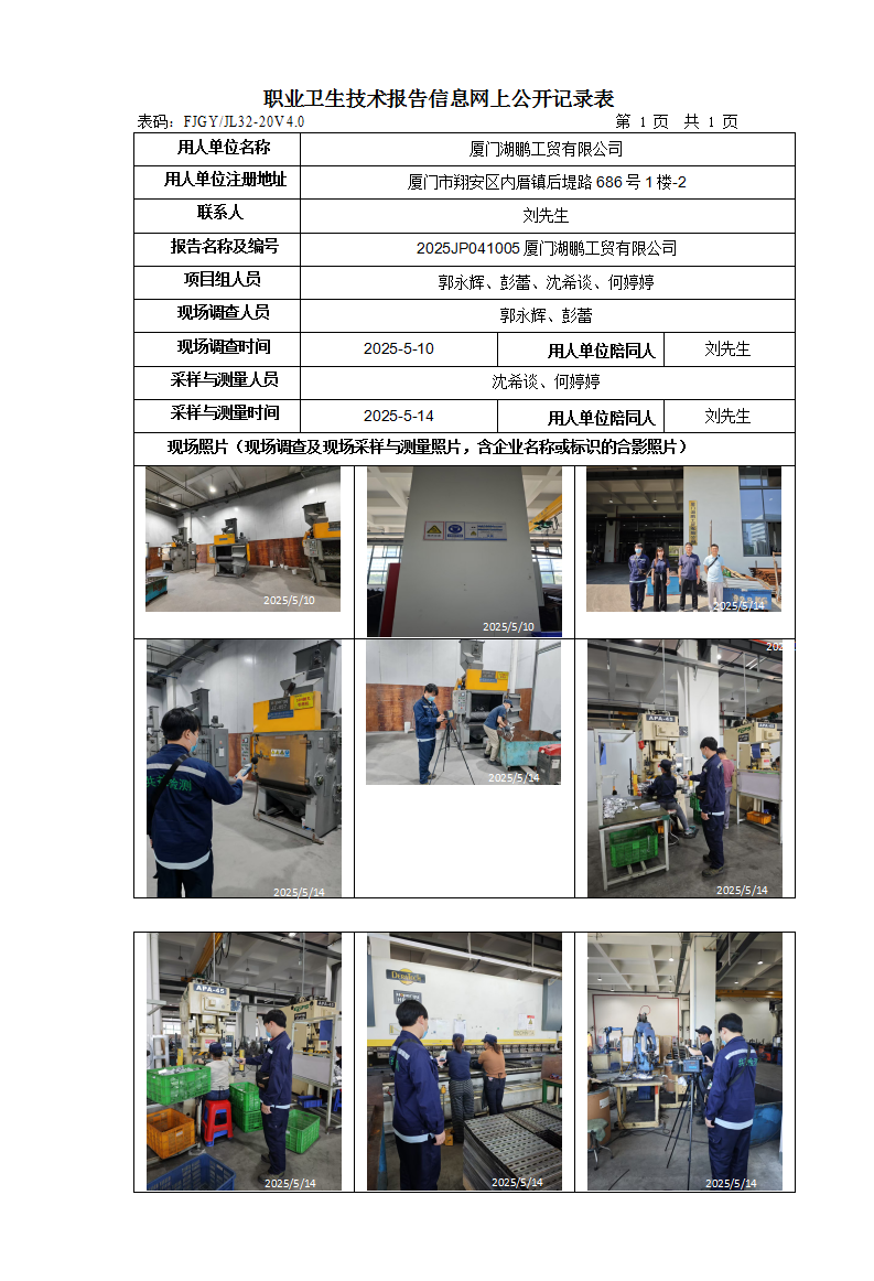 廈門湖鵬工貿(mào)有限公司-2025年工作場所職業(yè)病危害因素檢測