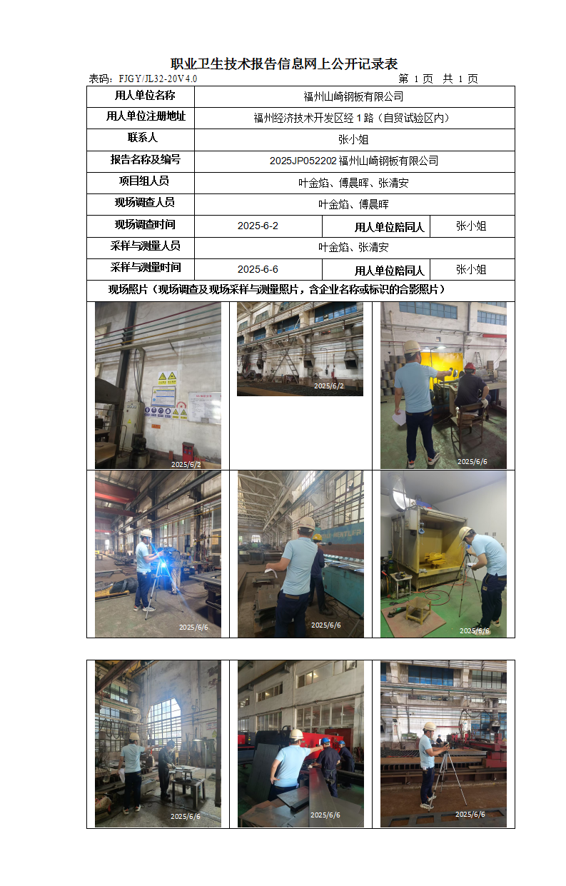 福州山崎鋼板有限公司-2025年工作場所職業(yè)病危害因素檢測