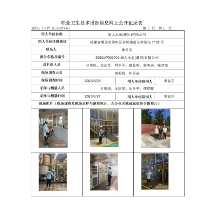 福人木業(yè)(莆田)有限公司-2025年工作場(chǎng)所職業(yè)病危害因素檢測(cè)